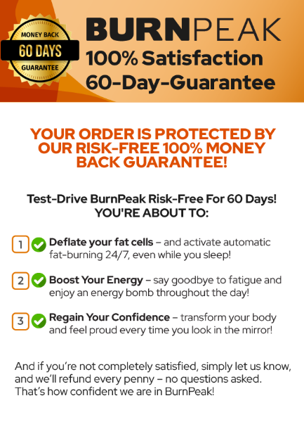 BurnPeak™ comes with a 60-day money-back guarantee. If you’re not completely satisfied with your results, you can return the product within 60 days for a full refund. Please review the terms and conditions to confirm eligibility.
